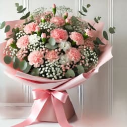 Price: $165.00Welcome New Baby Gift Set + Pink Carnation