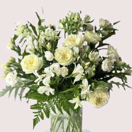 Price: $128.00 Sympathy for home or office with Peaceful White Rose Bouquet Product Tags: Next-day Delivery